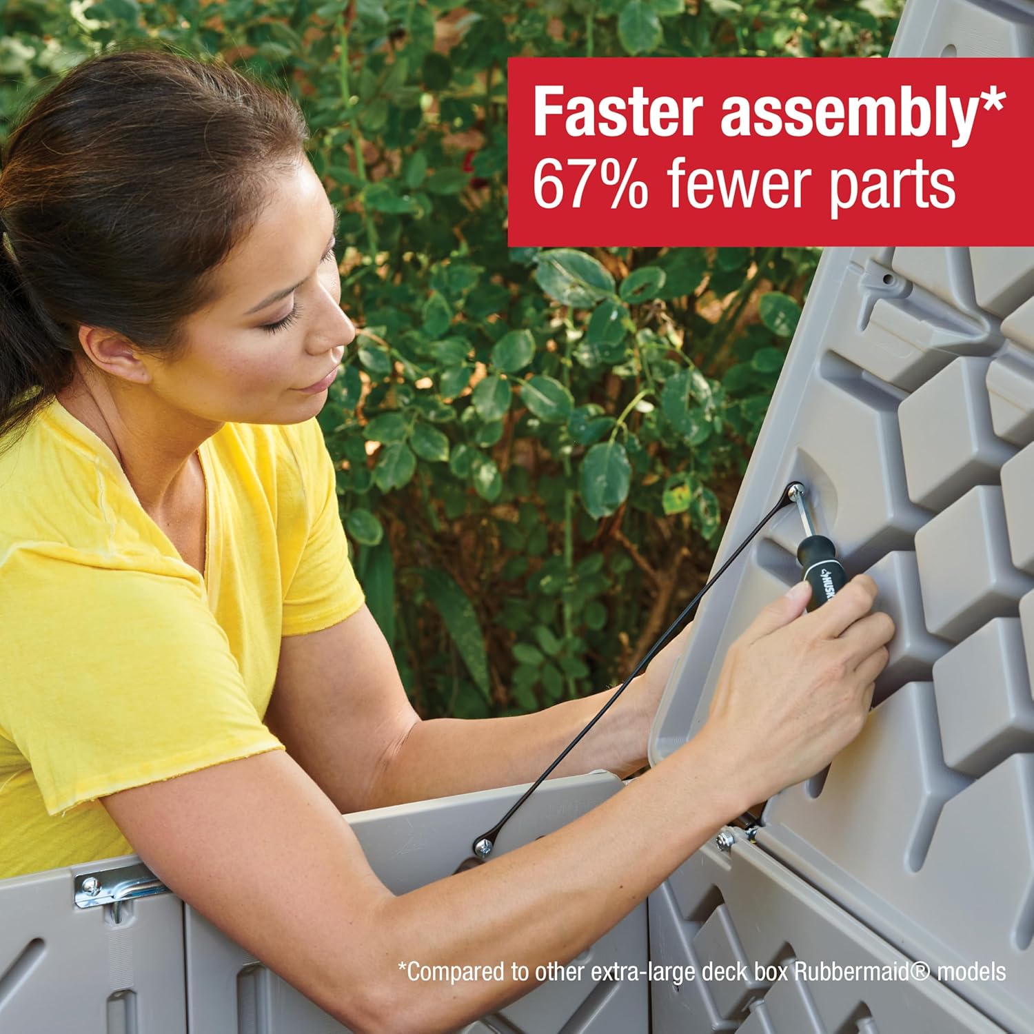 - STORAGE CAPACITY: From large backyard sheds to small deck boxes, Rubbermaid has the perfect storage solution to fit your needs and your space. Choose from a variety of sizes, styles and shapes to hold and protect what's important to you.
