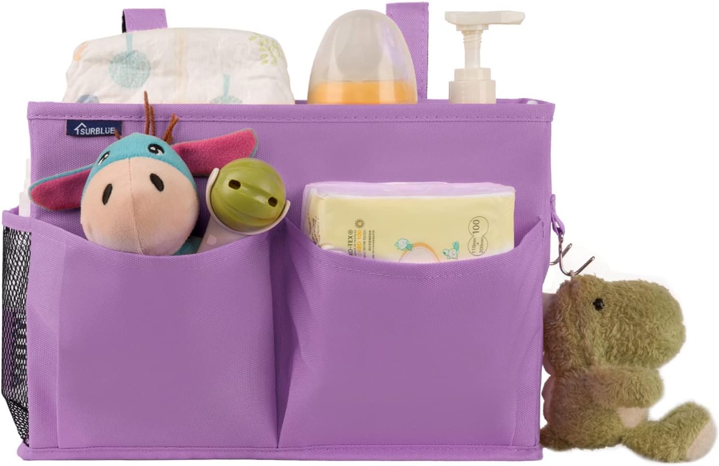 Surblue Caddy Hanging Organizer Bedside Storage Bag for Bunk and Hospital Beds, Purple, Small