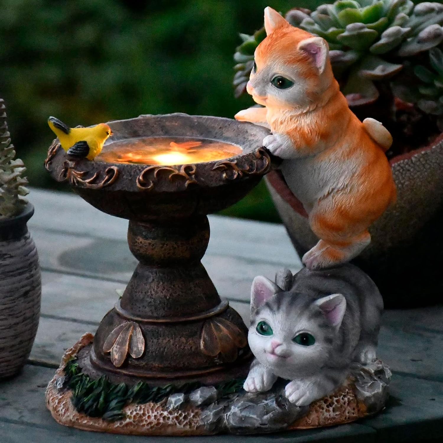- ▶ Durable and Waterproof - This outdoor solar cat garden statue decor can withstand all types of weather conditions including heavy rain and snow. Cat figurines made of high-grade resin, you don't need to worry about color-fading or water leaking.