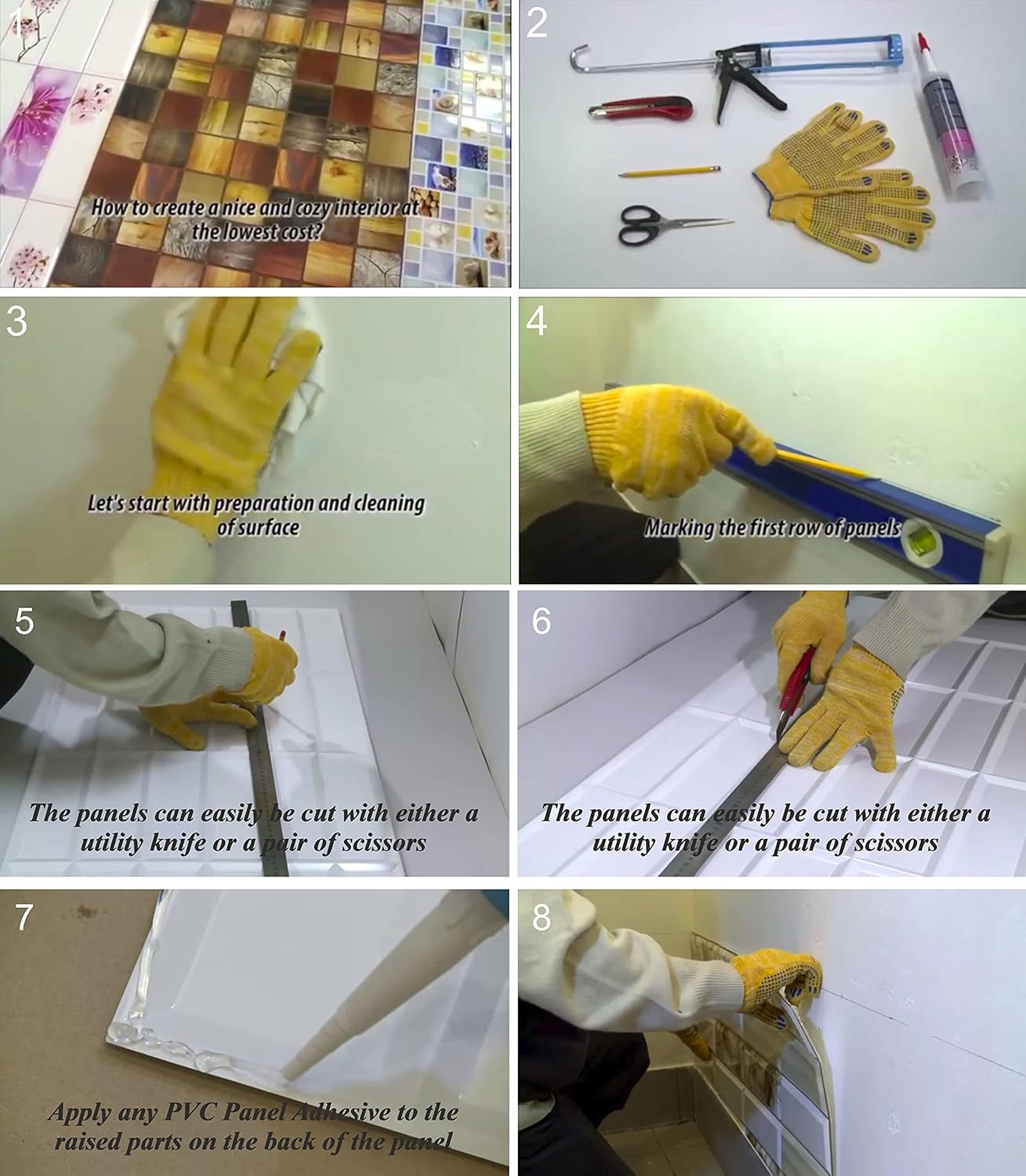- Pack of 5: total covered area is approximately 28.05 square feet; SUPER DURABLE: high quality PVC thermoplastic panel. No need for filling nail-holes, chips, cracks, smoothing the surface or sealing with a primer - use the panels to create the right atmosphere using only an adhesive.