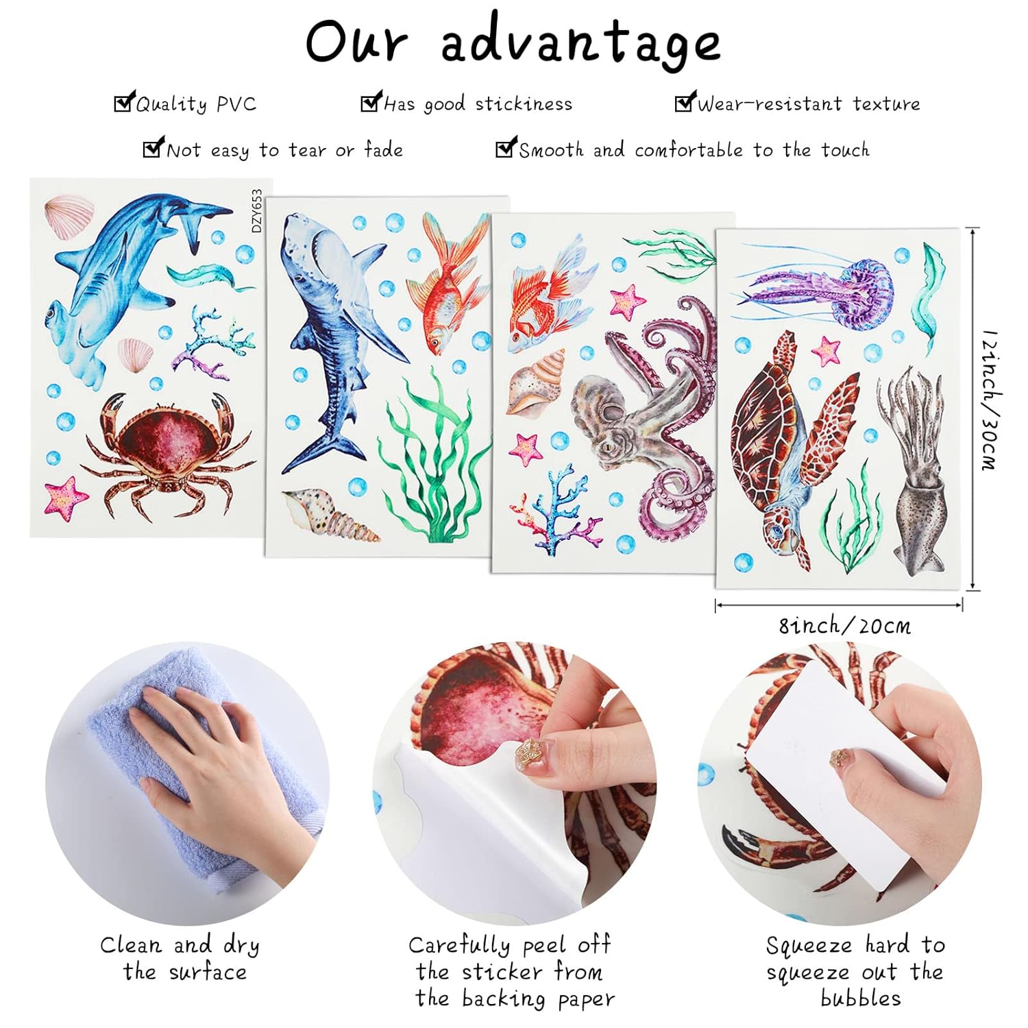 - Ample to Meet Your Needs: you will receive 4 sheets of ocean wall decals in different styles; The quantity and styles are sufficient for you to use and replace, and can easily meet your daily use and other requirements