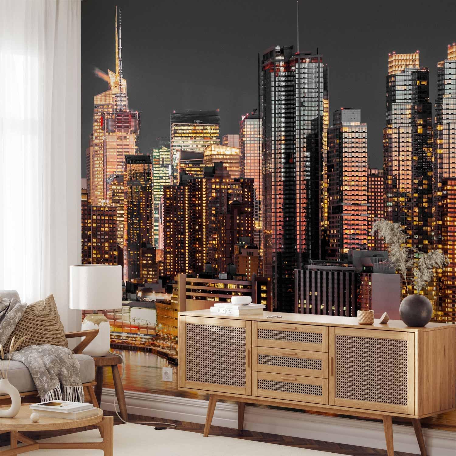 artgeist Wall Mural Peel and Stick New York City 212x98 in - XXL Self-Adhesive Corner Wallpaper Removable Large Sticker Foil Angle Wallpaper Wall Decor Print Night Skyline Panorama d-B-0060-a-e