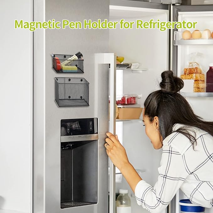 - [Simple Design for Organization] With this sleek mesh design, provide a perfect accent to your fridge, locker and whiteboard. Keep your loose pens, pencils and markers organized with this mesh basket that is durable and functional for parents, teachers and kids alike. Since it can be used in a classroom or household, this holder makes a perfect gift for teachers as well students to show your appreciation.
