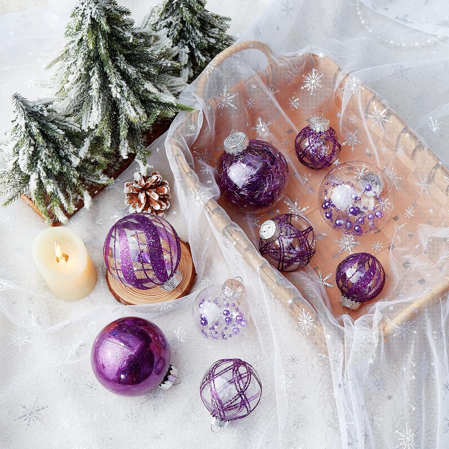 • Purple Christmas Ball Ornaments--These 24 clear Christmas decorations are made of durable and environmentally friendly plastic with excellent shatter resistance. These Christmas balls have shiny decorations and a transparent glaze base, which are perfect for hanging on your Xmas tree and decorating your Home with them,this will become part of your vacation.