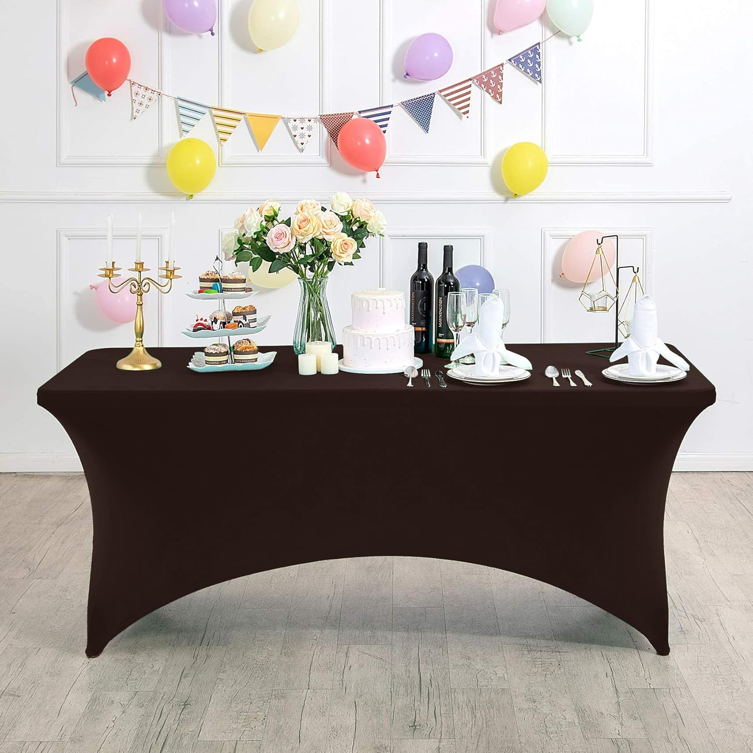 Spandex Table Cover for 8FT or 4ft or 6ft Table Universal Fitted Stretch Tablecloth for Party, Banquet, Wedding and Events-Chocolate