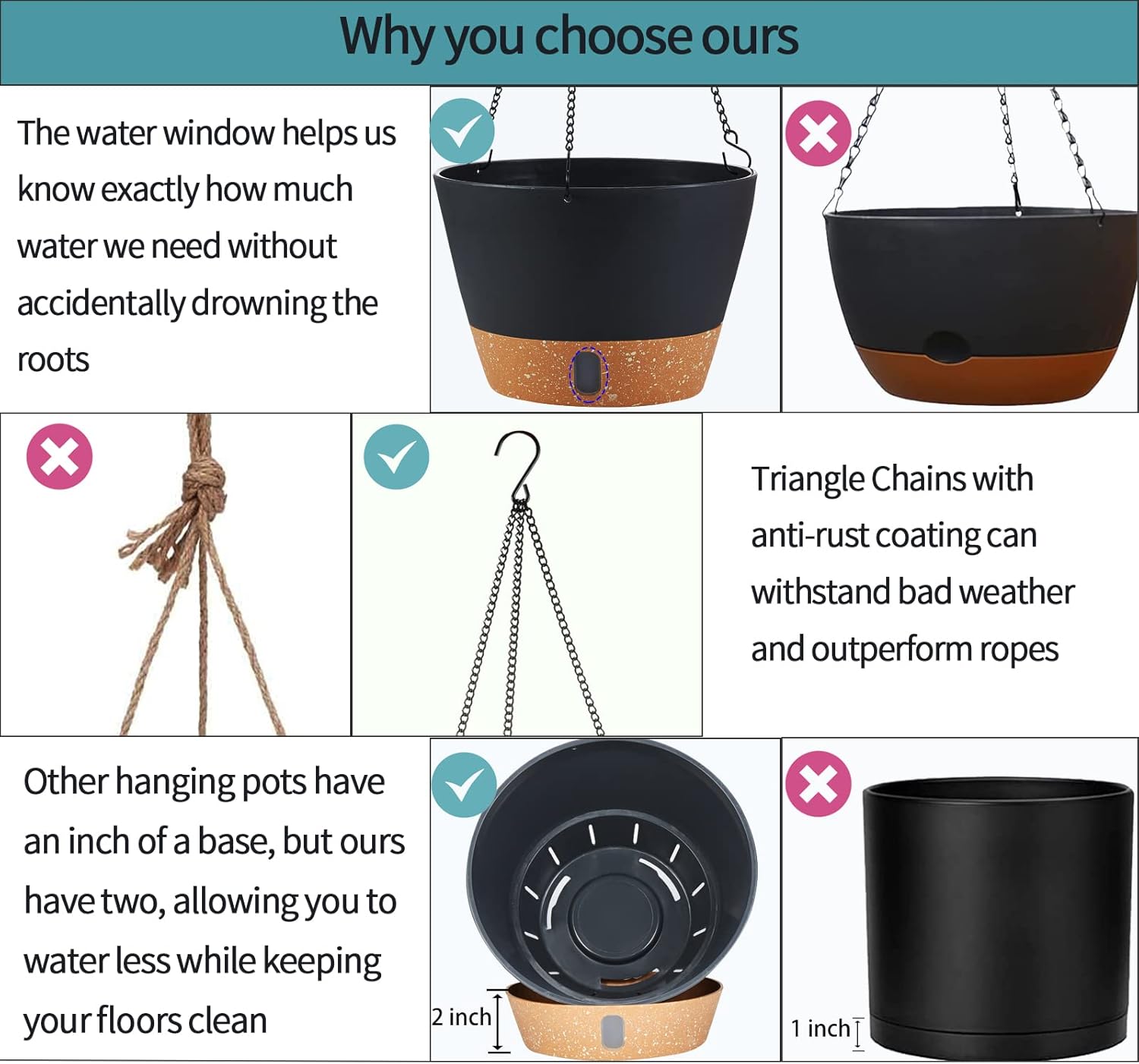 - Drainage Hole on the Bottom: This self watering planters with drainage holes help you avoid overwatering, lets excess water drain, and maintains proper soil air circulation. Grow robust, healthy plants with little maintenance!