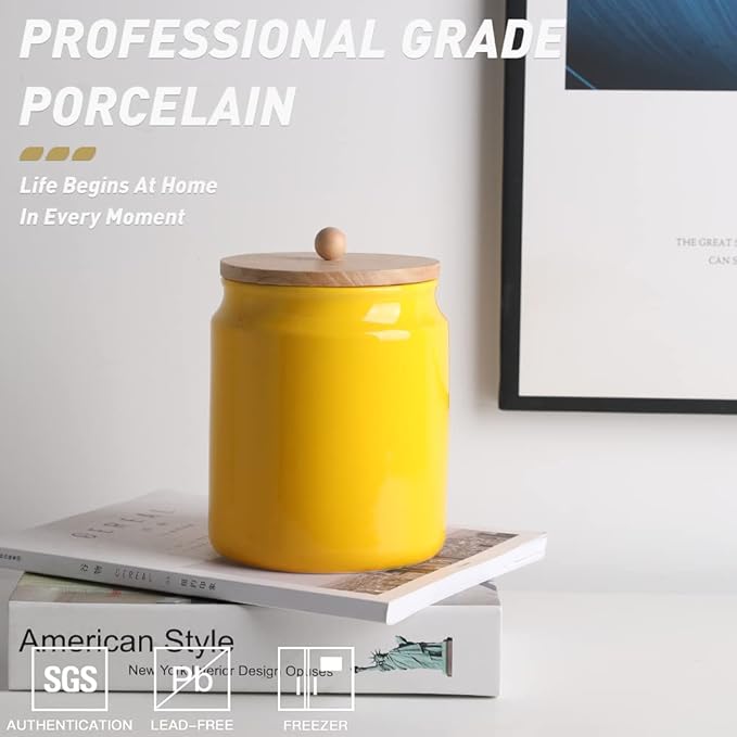Sweejar Ceramic Kitchen Canisters, 58 FLOZ Porcelain Food Storage Jar with Airtight Seal Wooden Lid, Home Container Serving for Coffee Beans, Tea-leave, Sugar, Salt and More, Tool Bucket (Yellow)