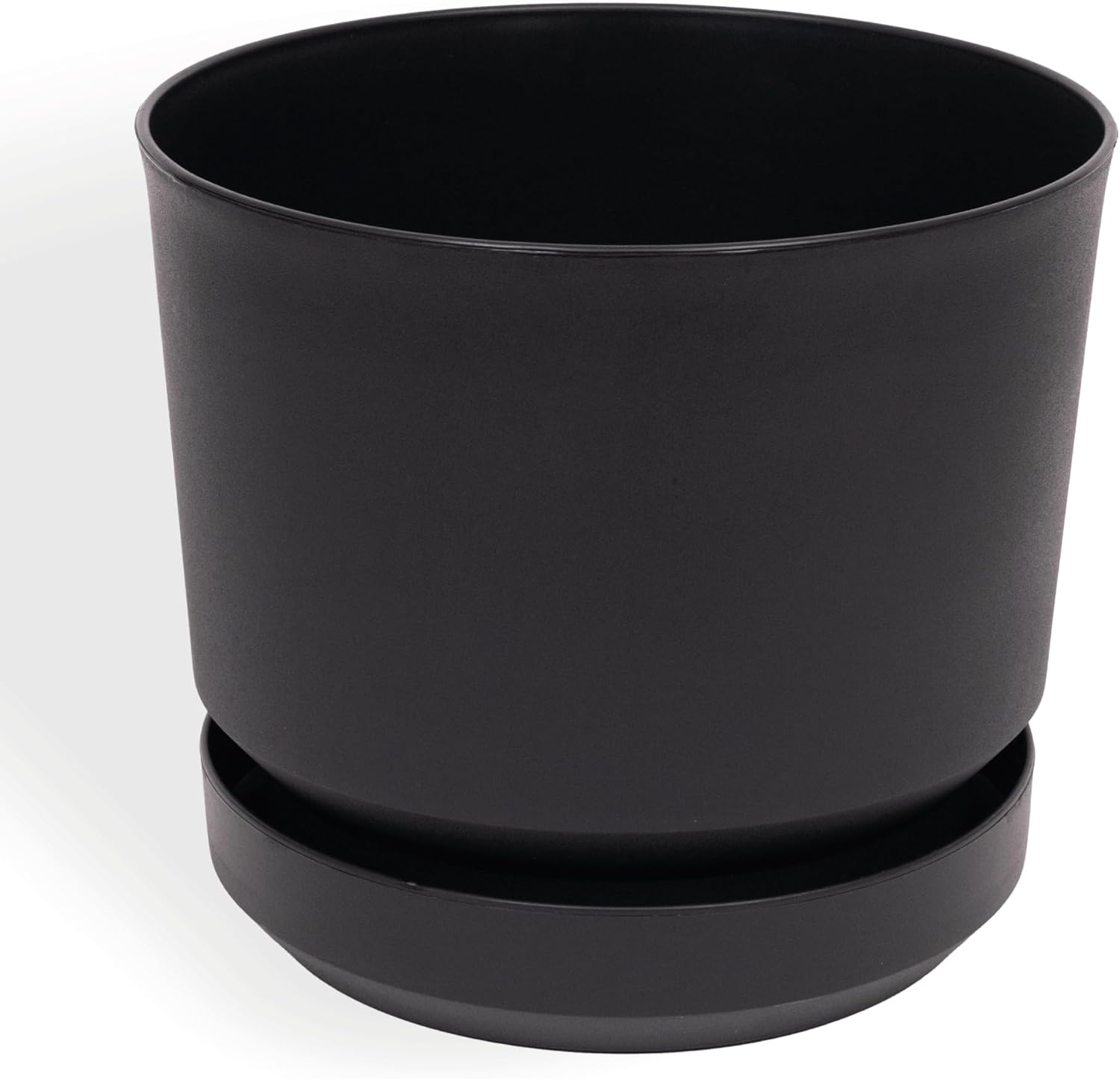 Elly Décor 10 inch Plastic Cylinder Planter Pot with Self-Watering Saucer and Drainage Hole,Lightweight & Extremely Durable, 10"x 10", Black