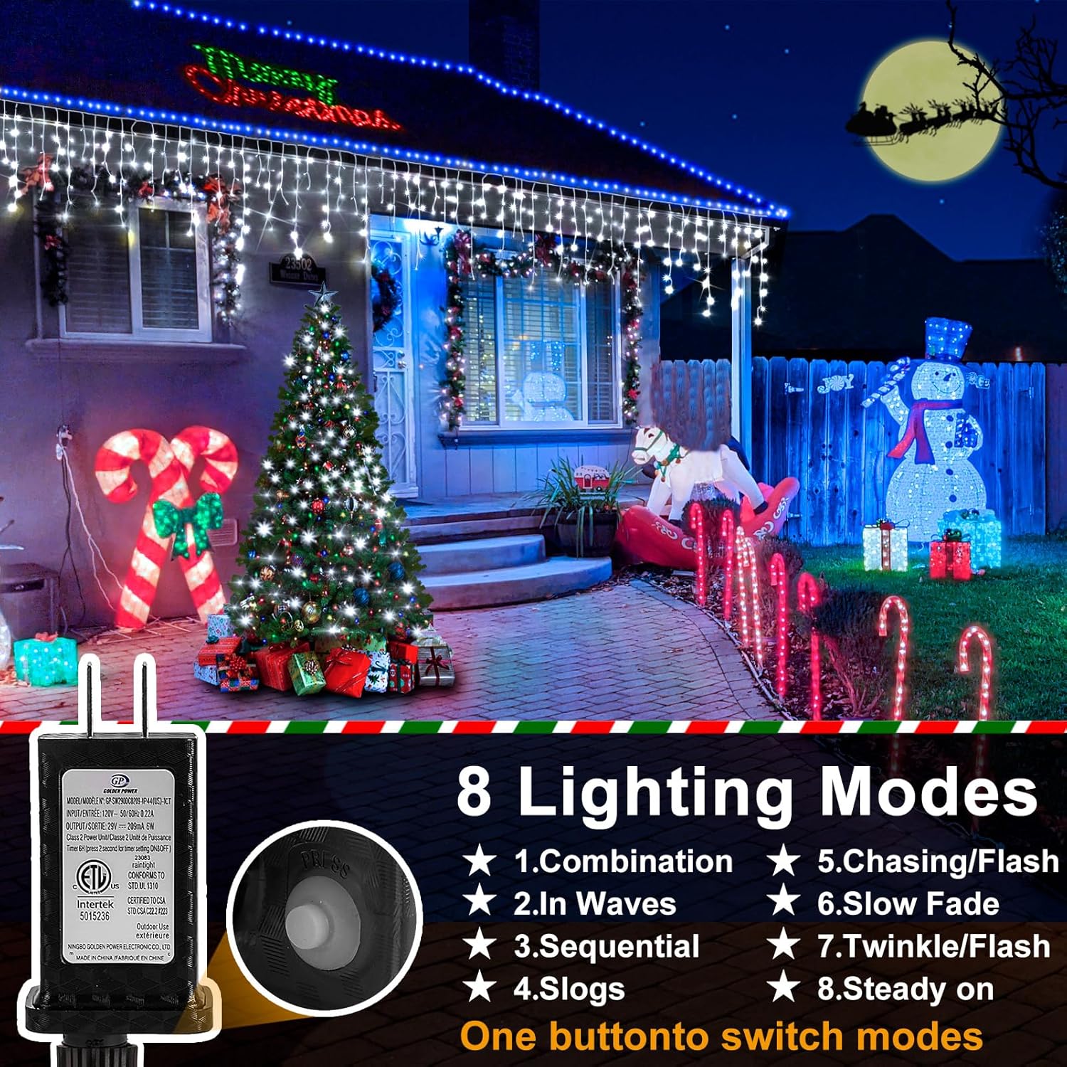 - Extra Long Christmas Lights: 1600 LED cool white ice lights stretching 164 ft, come with a 9.84 ft extension cord. Perfect for draping around your house eaves, with 320 straight drops to fulfill all your outdoor Christmas decorating dreams
