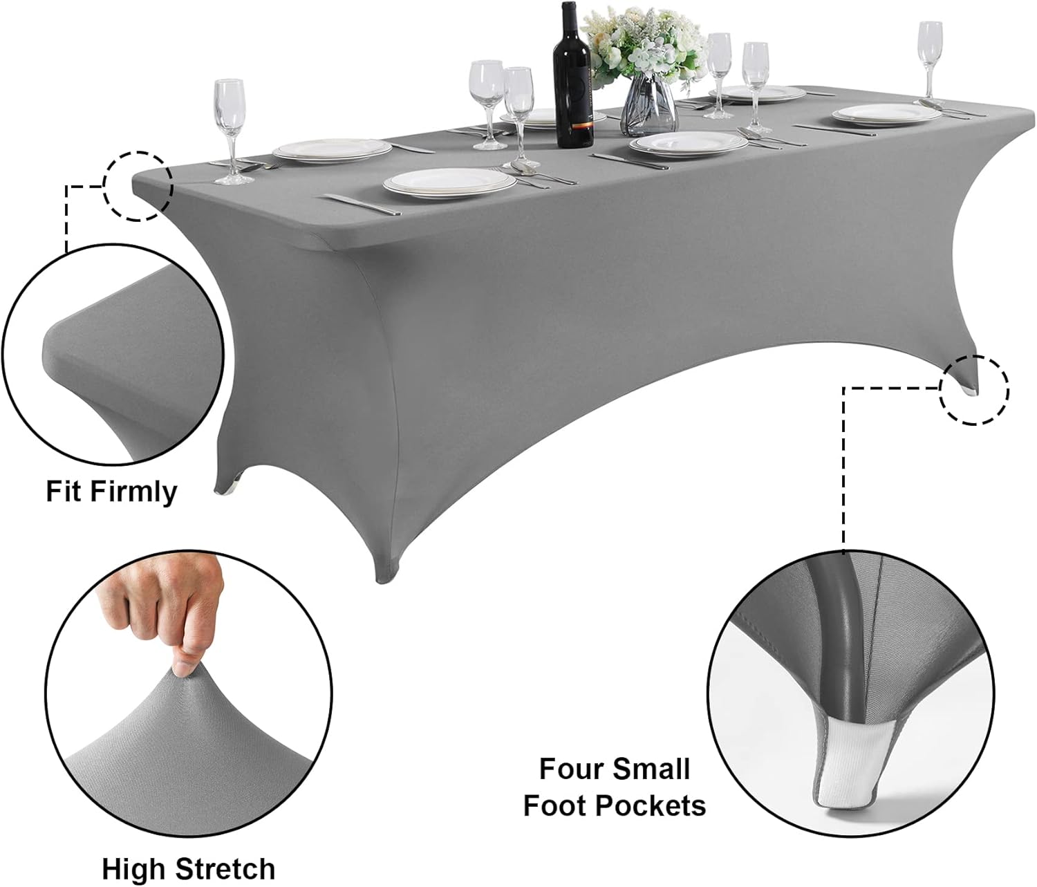 SuperO 2Pack Waterproof Spandex Table Cover for 6FT Table Universal Fitted Stretch Tablecloth for Party, Banquet, Wedding and Events-Gray