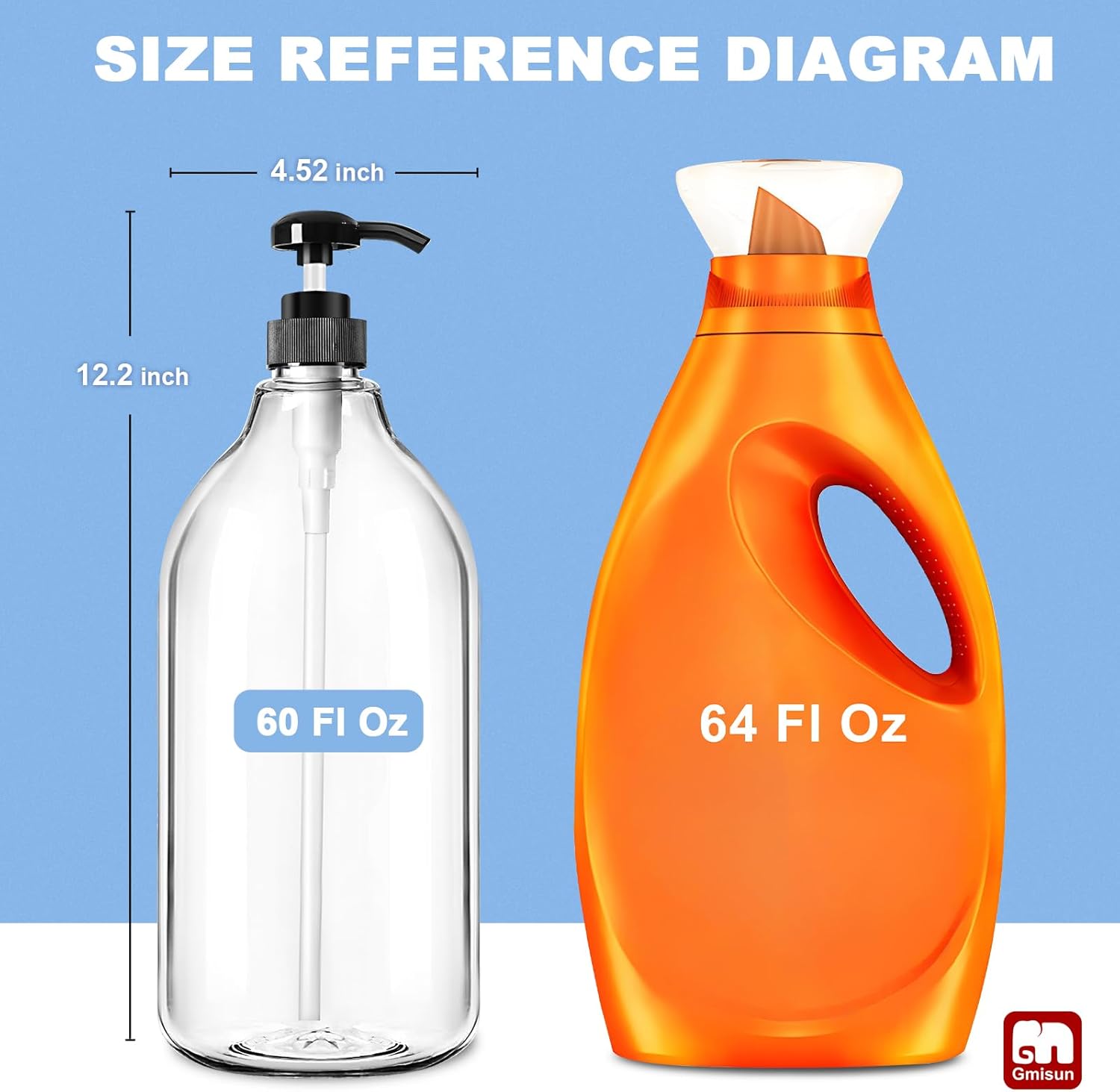 GMISUN Laundry Detergent Dispenser, 2 Pack Liquid Laundry Soap Dispenser, 64oz Storage Container for Farmhouse Laundry Room Decor, Liquid Bottle Organizer for Detergent/Softener/Bleach