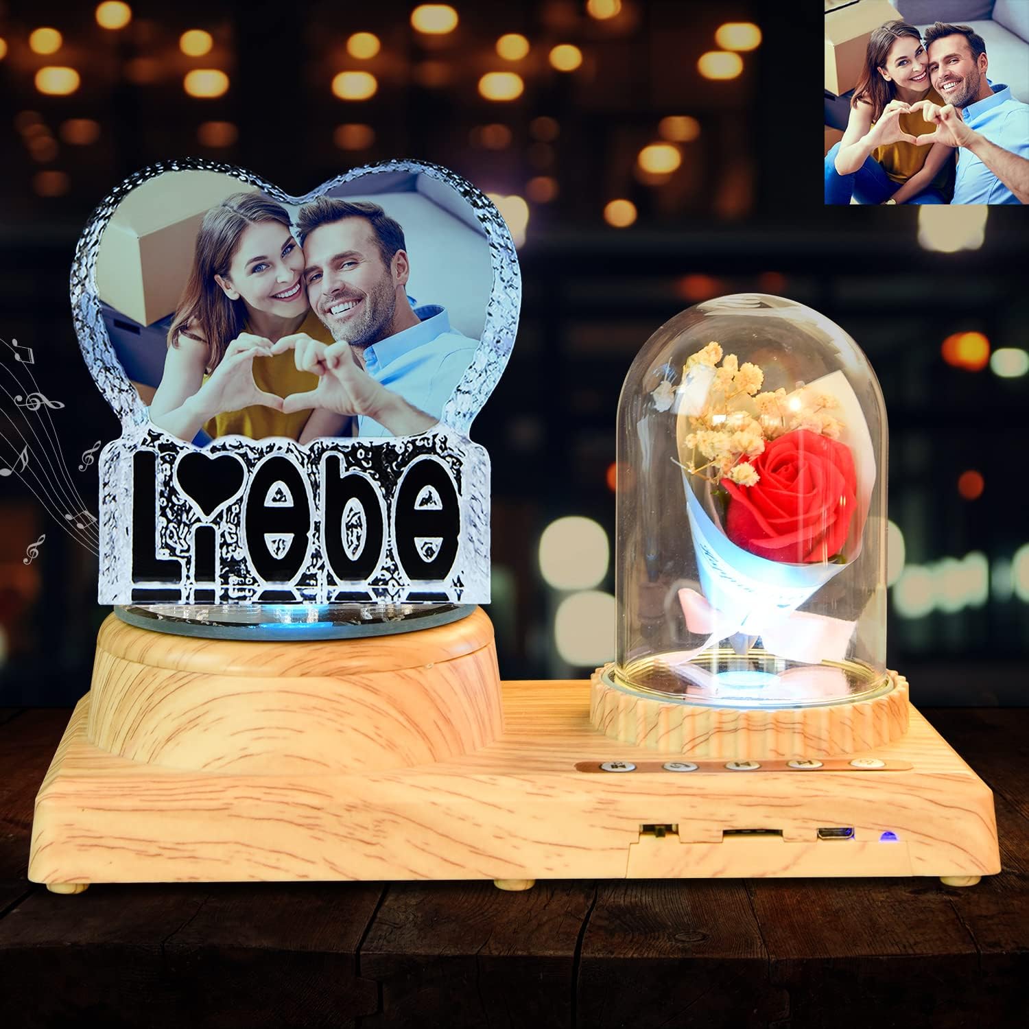 - ✔【High Quality Material】This bluetooth crystal ornament adopts high-quality white crystal to customize photos, wood grain rubber bluetooth music base can be connected to bluetooth or insert memory card to play music, with 7 color LED lights to switch freely, 360° rotation, USB charging. It is a very beautiful, romantic and interesting high-quality ornament.