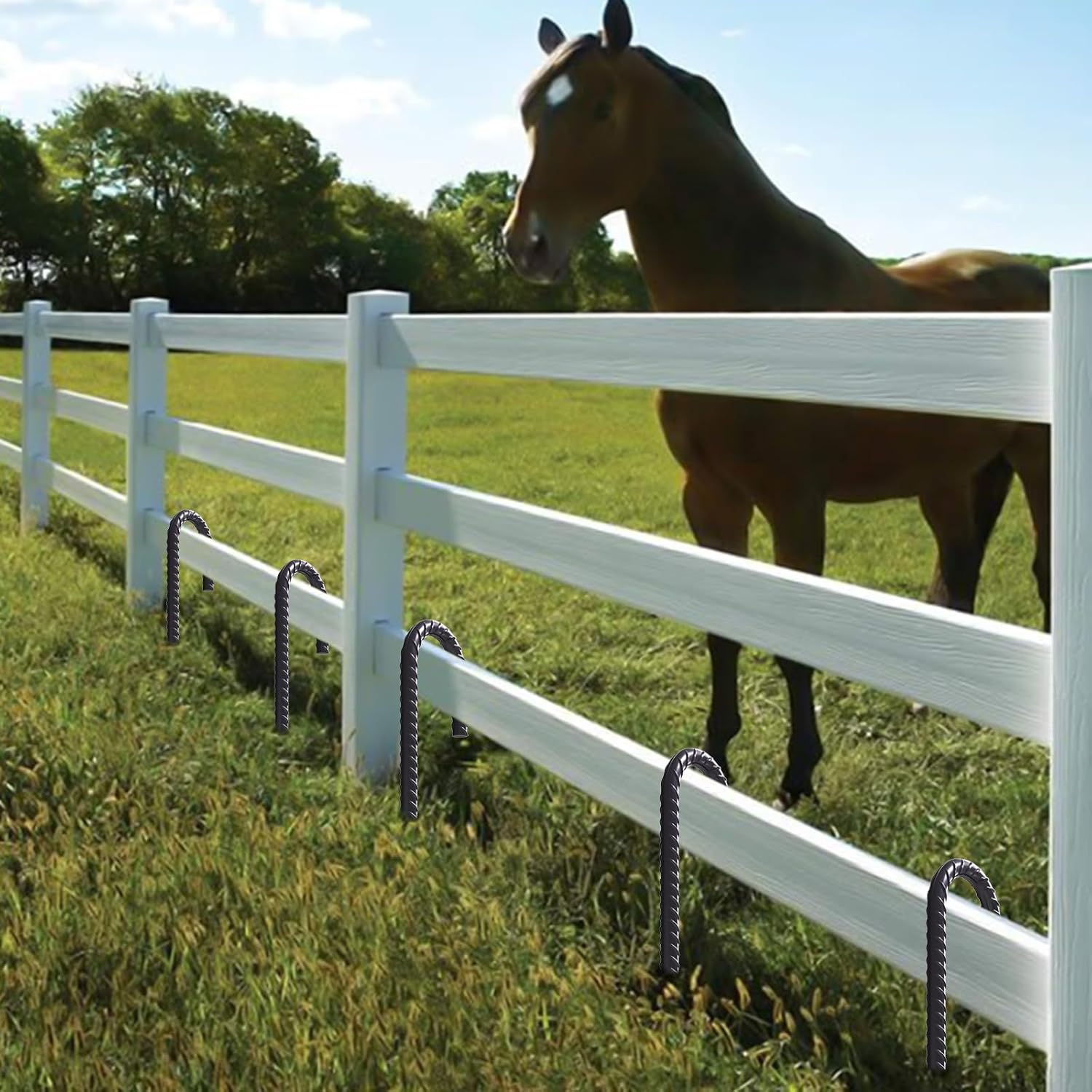- STAKE MEASUREMENTS - Set of 20 Steel Rebar J Hook Ground Anchor Stakes.Each stake is approximately 36" in length,top to bottom Inside of hook is 1-1/2 inch,0.47"(12mm) in diameter thicken than other 3/8 inch diameter rebar stakes, perfect for chain link fence, greenhouse, metal trellis, portable garage, swing set, Christmas decorations etc.