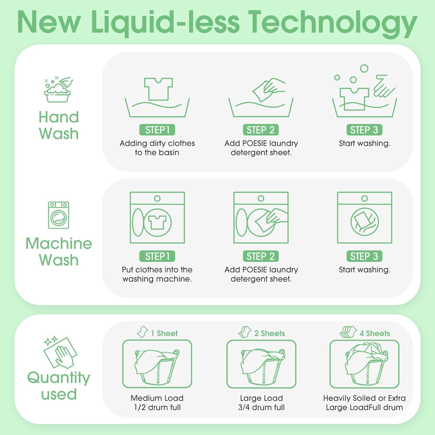 - Concentrated powerful sheets - You can receive pre-processed light 160 laundry detergent sheets, each piece has a highly concentrated cleaning power. Recommended reference amount: 1 sheet for small/ medium loads, 2 sheets for large loads and 4 sheets for extra large loads. You can adjust it by yourself according to the level of soiling of your laundry. 160 sheets=160 small loads=80 large loads