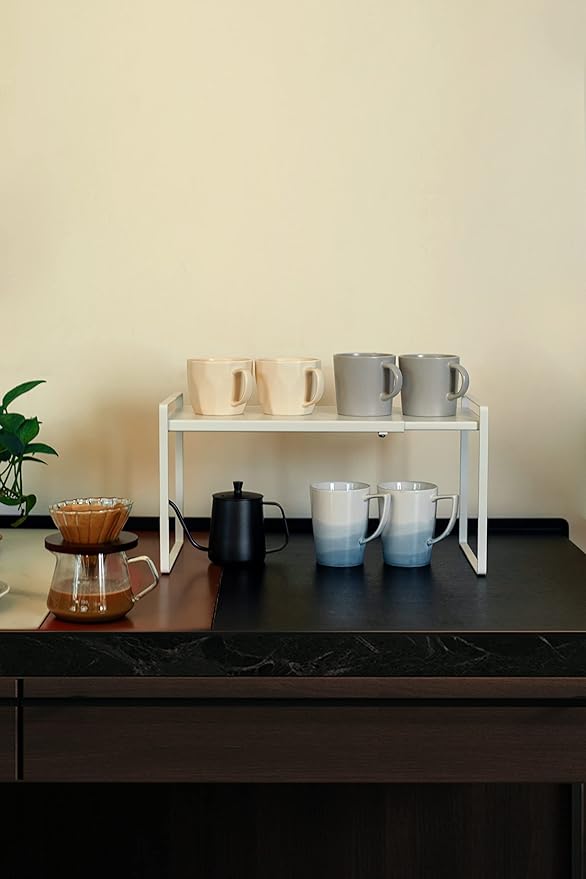 Nxconsu Expandable Cabinet Shelf Organizer Riser for Kitchen Pantry Cupboard Under Sink Countertop Home Storage Organization Rack Space Saver Freestanding Heavy Duty Nonslip Stackable White