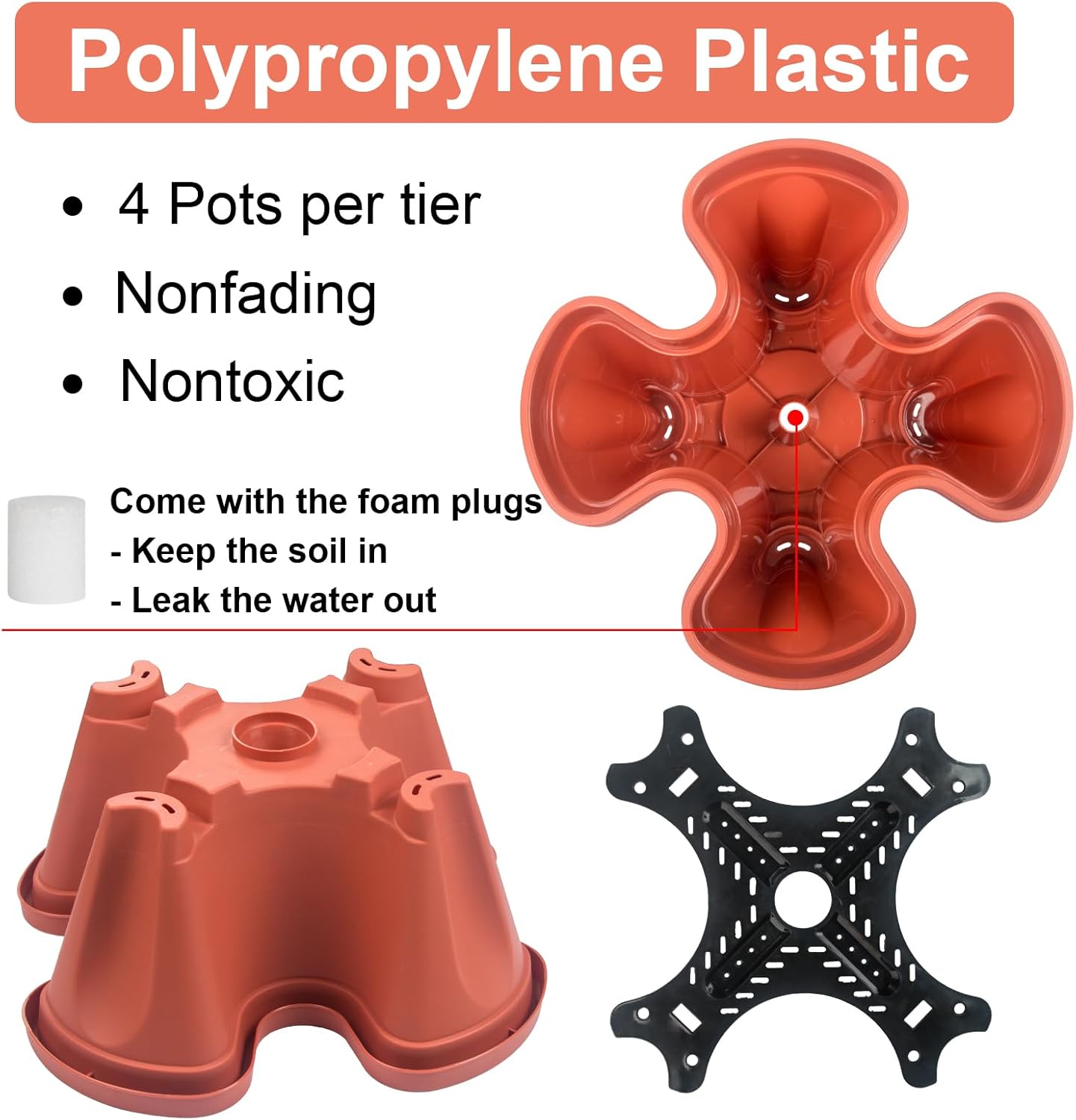 DUNCHATY Stackable Planters 5 Tier Vertical Garden Planting Tower Planters Strawberry, Herb, Flower, and Vegetable Planter Indoor Outdoor Gardening Pots with Removable Wheels and Tools, 2 Bundle