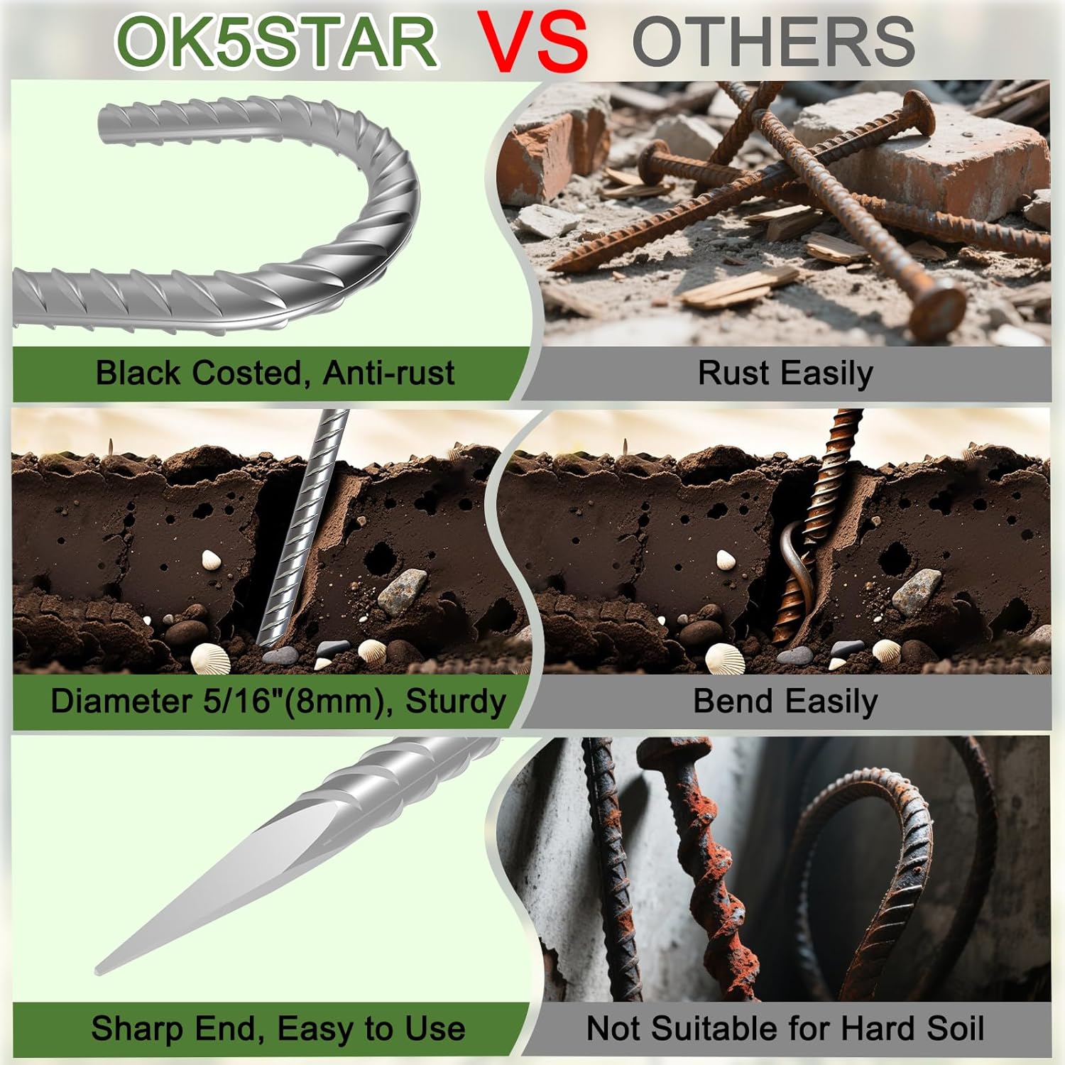 - ANTI-RUST: Yard stakes are treated with galvanization, the painted surface made them less likely to rust even when buried long-term in soil in high-humidity areas