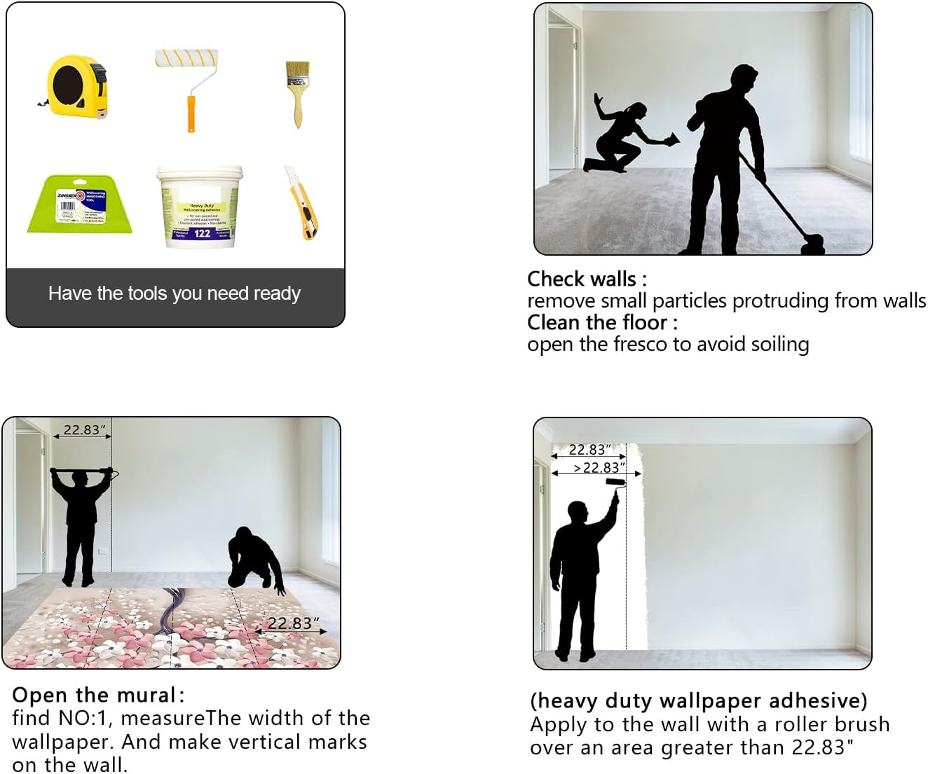 - It's easy to install: at the bottom of each mural we have a numbered sequence, You can refer to the instructions we provided and the main picture 6-7,just match the numbers and you'll be amazed!
