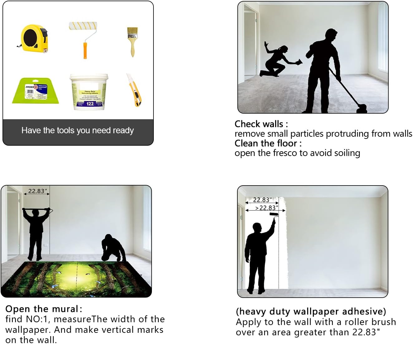 - It's easy to install: at the bottom of each mural we have a numbered sequence, You can refer to the instructions we provided and the main picture 6-7,just match the numbers and you'll be amazed!