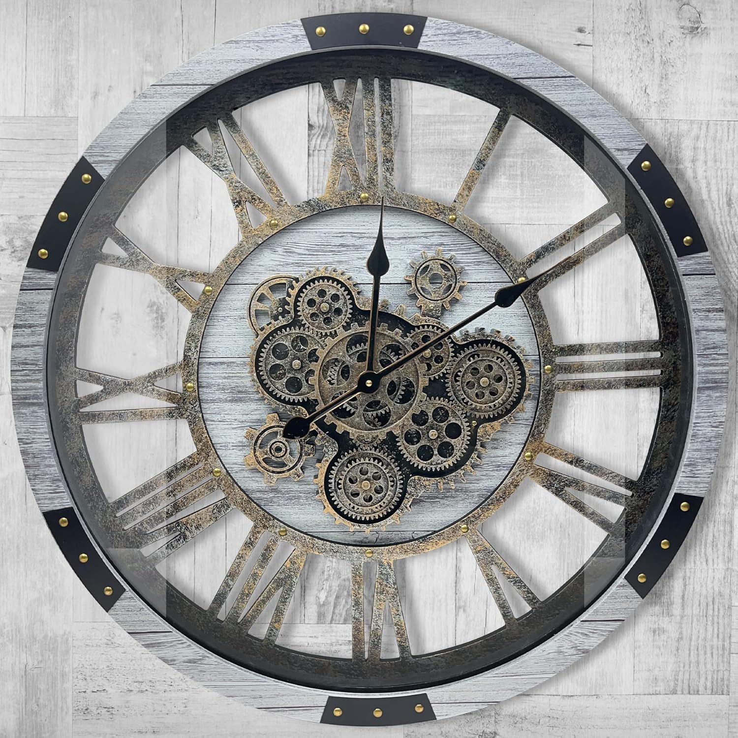 - 🧭【Real Moving Gears Wall Clock】The rustic wall clock is design with multi-real moving gears, put battery in, various gears start working, makes a subtle relaxing sound and makes a living element in the environment in where it is placed, vintage and magical, catch all eyes of visits.