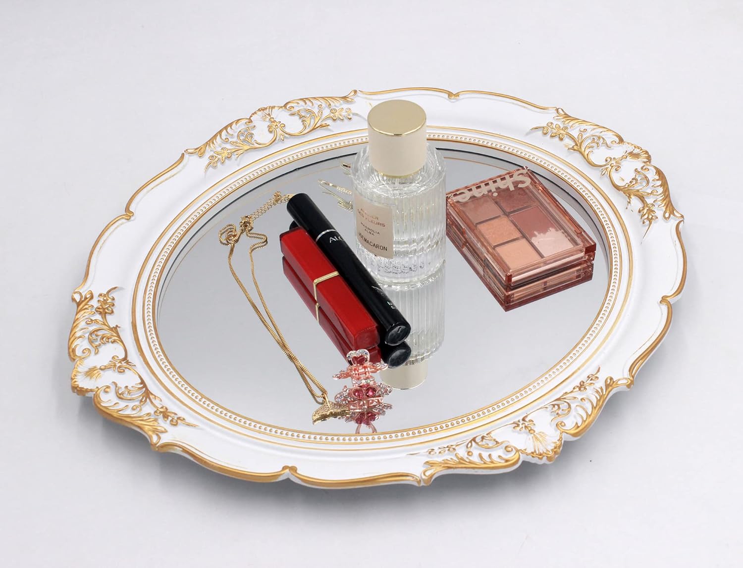 Vintage Decorative Wall Mirror 14.8 x 13.1 Inch Oval Mirror White