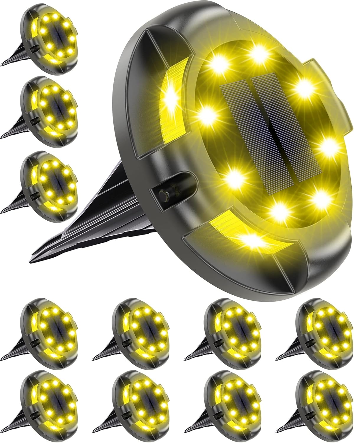 - EASY TO ASSEMBLE AND USE: The solar disk light doesn't need electricity, you can assemble it in minutes. All the lights turn on and off automatically, they will automatically work after dark and automatically charge during the day. You don't need to take care of them.