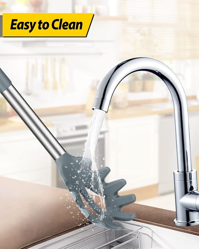 Silicone Pasta Fork and Ladle Spoon Set, Large Non Stick Kitchen Utensils for Cooking,Stirring,Serving Spaghetti, Soup, Sauce (GRAY)