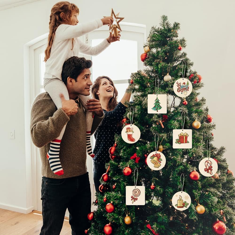 - ENJOY YOUR DIY FUN: Unfinished wood tags can DIY with different tools for Christmas ornaments, painting, drawing, writing, carving, etc