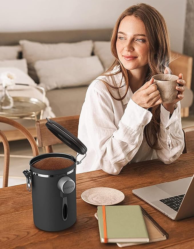 - 【What You’ll Get】 - Besides the coffee canister, you’ll as well get a premium stainless steel scoop, a perfect sized sugar cube tongs, extra 6pcs of CO2 release valves