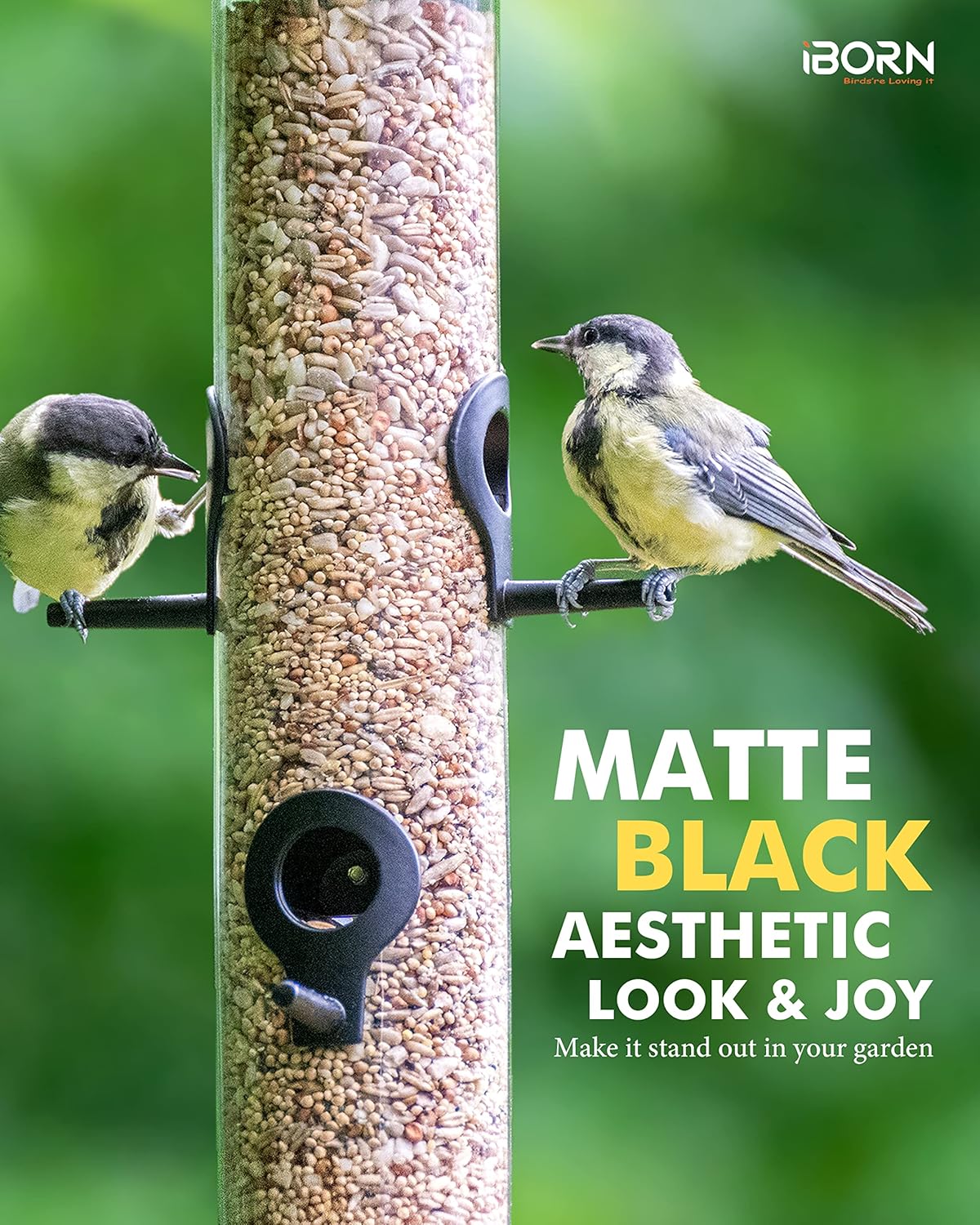 - 【Black Power Coated,No Color Fading, Great for all the year round feeding】Wear and Worn, Never Rust. All Metal top, base, feeding ports, perches, black power-coat,rust resistant, robust construction to sustain all weather days. It features royal-stylistic black outlook, traditional design inviting more feather birds to your garden, add more liveness to your garden life.