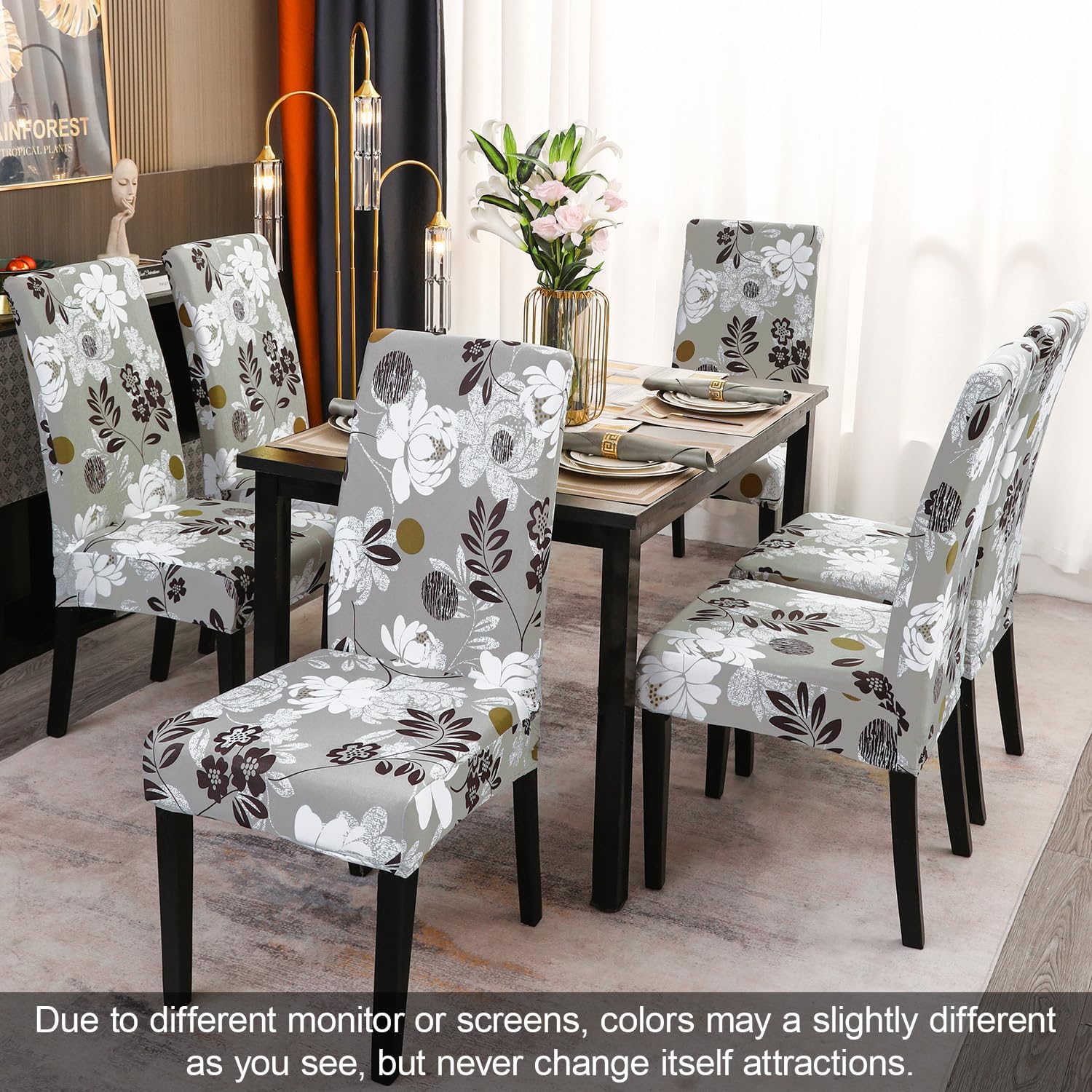 JQinHome Chair Covers for Dining Room Set of 4, High Stretch Removable Washable Parsons Chair Slipcover for Home Party Hotel Wedding Ceremony (Flower,4PCS)