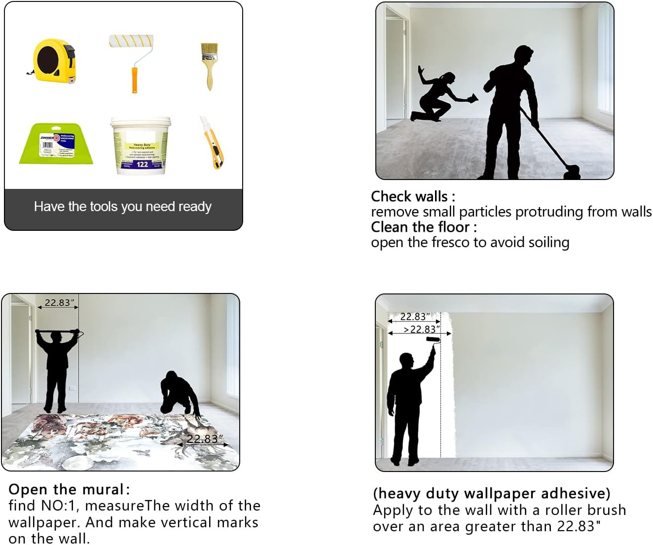 - It's easy to install: at the bottom of each mural we have a numbered sequence, You can refer to the instructions we provided and the main picture 6-7,just match the numbers and you'll be amazed!