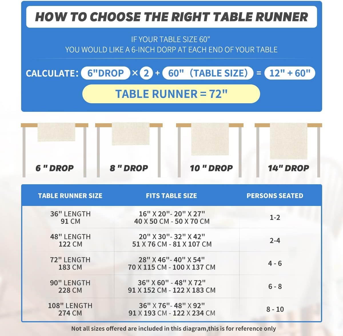 - Fits Table Size : This table runner is 13 x 120 inch, appropriate for a table that can seat 10-12 people, better match your table and give you a delightful dining experience