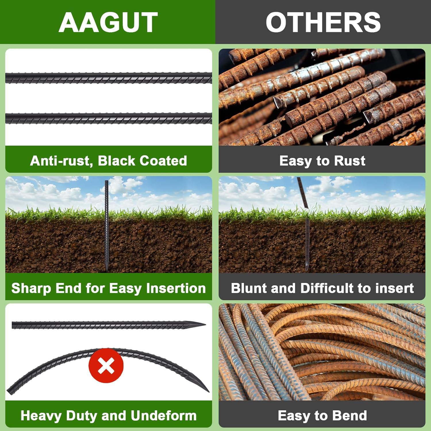 AAGUT Rebar Stakes 24 Inch Straight Garden Plant Stakes (20 pcs) 1/2" Thickness, Heavy Duty Metal Spikes for Concrete Forming, Landscape Timber, Fence, Ground Anchors with Chisel Point End, Black