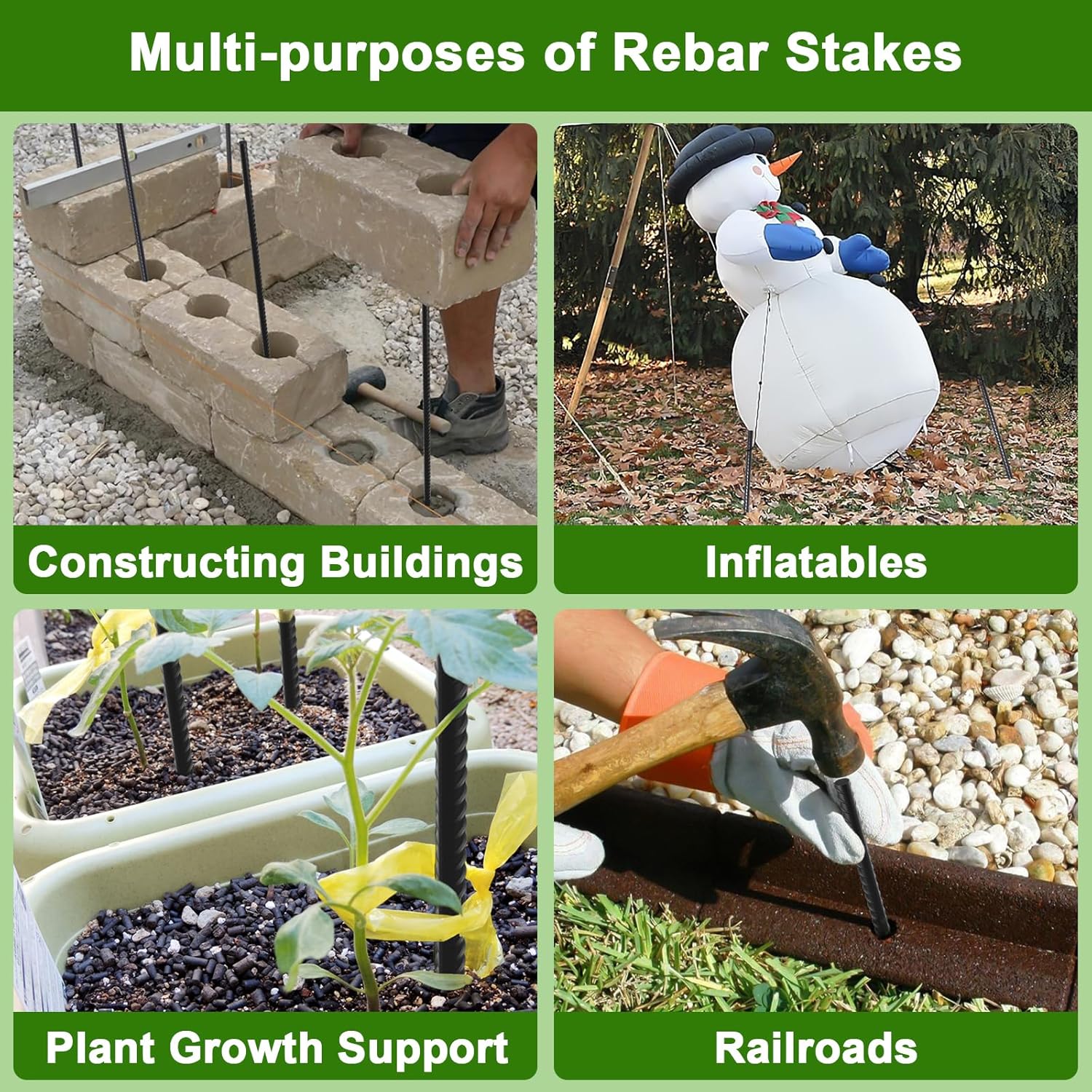 - MULTI-PURPOSES - These durable rebar spikes are strong enough for any purposes. Training trees, shrubs, vines, landscape timbers, securing concrete forming, survey markers, concrete blocks and holding down camping tents and more.