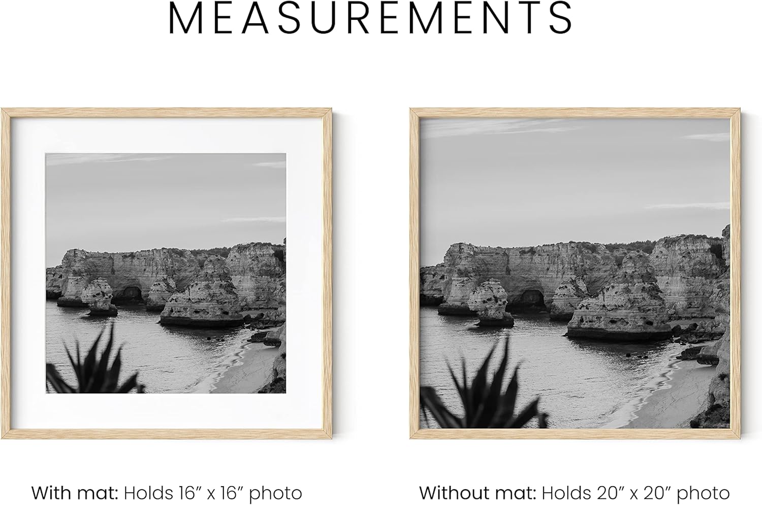 HAUS AND HUES 20x20 Picture Frames Set of 9 - Square Frames 20x20, Picture Gallery Wall Frame Set, 20x20 Frames for Poster, 9 Set of Frames for Gallery Wall, Square Picture Frames (Beige Oak Frames)