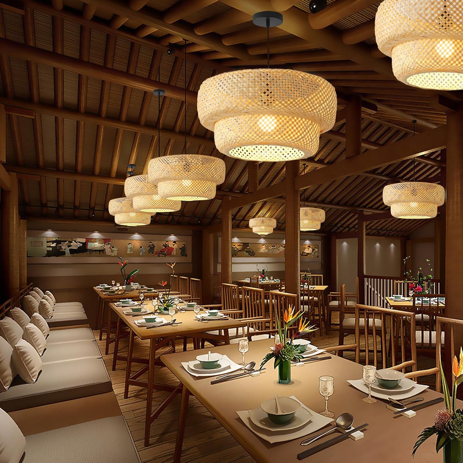 - 【Excellent Design】Bamboo/wood/rattan, the pendants are made of natural materials. The lights are hand woven with natural bamboo by superb skills bamboo artists. Decorated with classic tropical style elements, creates a wonderfully new look