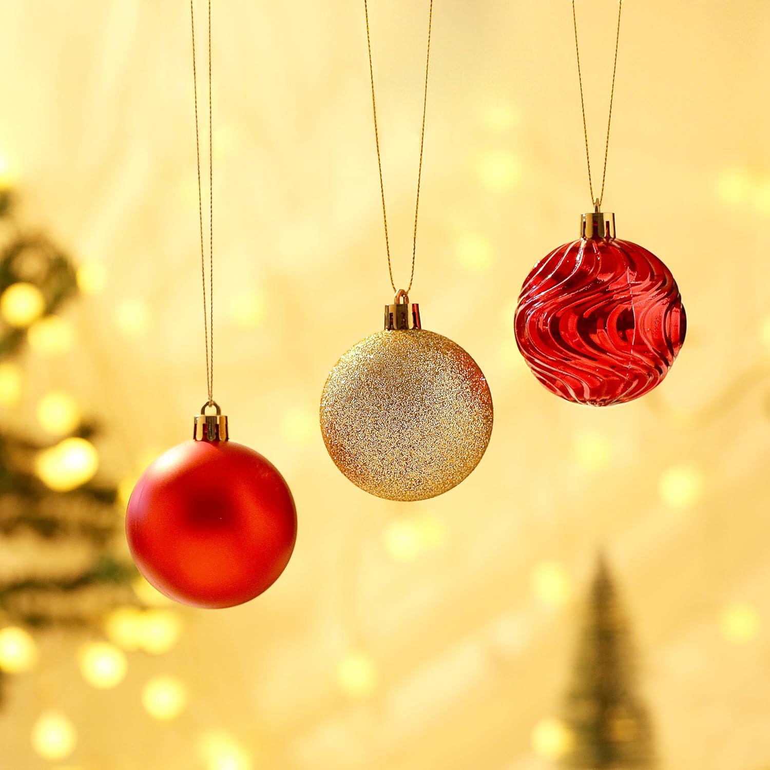 • Vibrant & Eye-Catching: Boasting a variety of beautifully designed styles, these Christmas ball ornaments showcase a stunning color palette that will effortlessly enhance your tree and create a captivating holiday atmosphere.