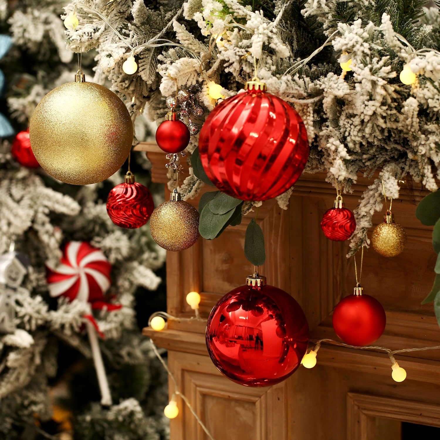 Christmas Ball Ornaments for Xmas Decorations,50 pcs Christmas Extra Large Tree Shatterproof Ornaments-Red&Gold (Combo of 5 Style in 3 Sizes)