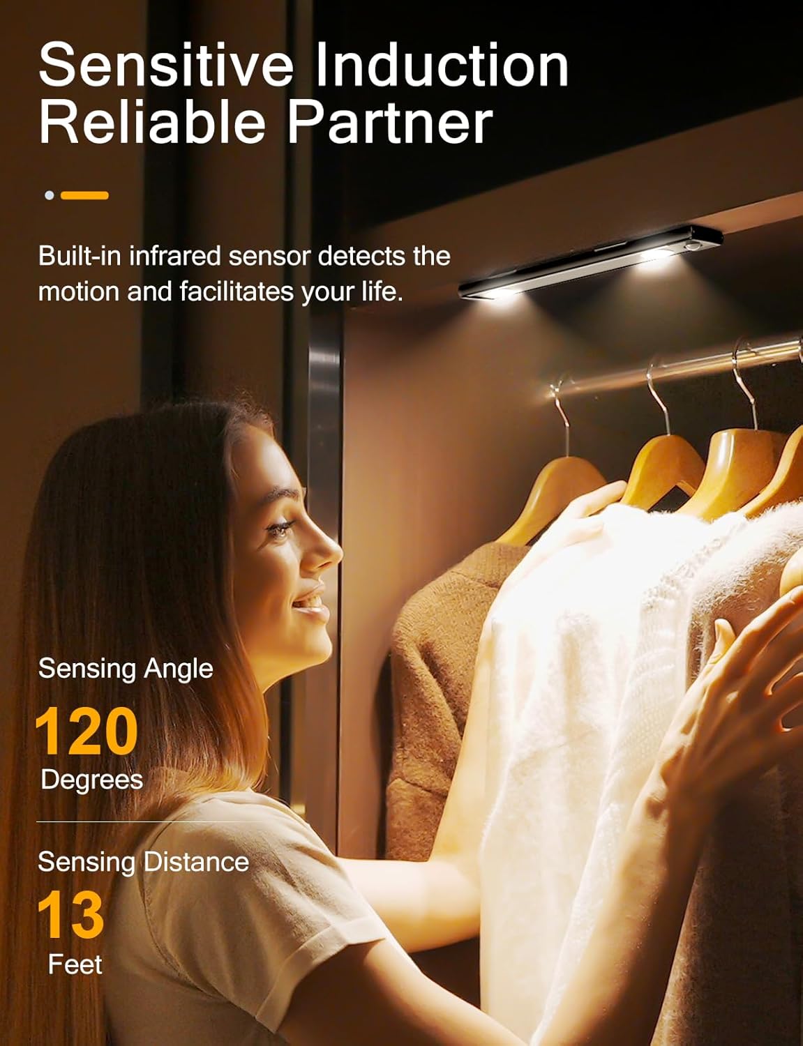 - Multi-Scene Applicable Wireless LED Lights:The wireless under counter lights for kitchen is designed for multiple uses. This safe and convenient motion sensor light is a safe and great illumination solution for the baby room, stairs, basement, storeroom, cabinet, wardrobe, garage, and trunk. Serve as an emergency light, just in case.