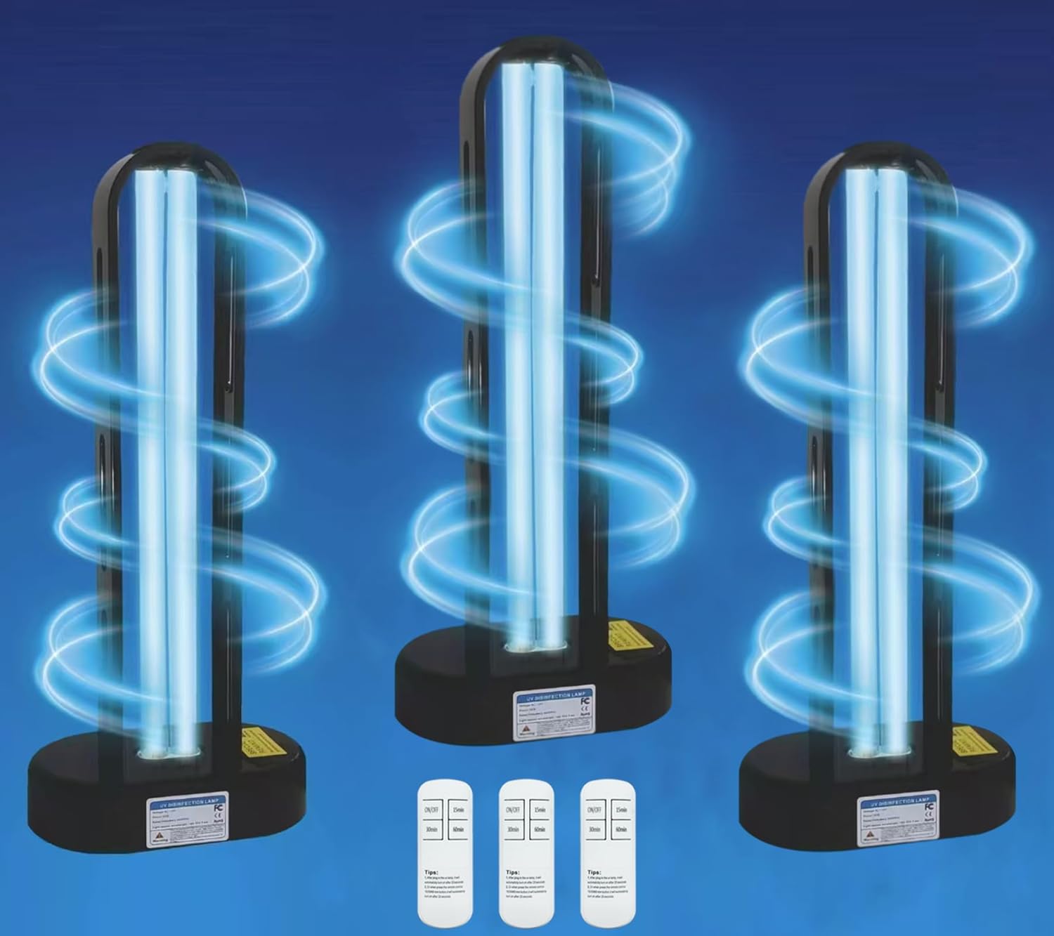- 【Special Design】We can turn on the lamp by remote control with timer settings for 30, 60 and 90 mins. Or we can turn on this ultraviolet manually, If lost the remote control, we have special design, Only need to plug in switch cord, the lamp will automatic turn on after 20 seconds