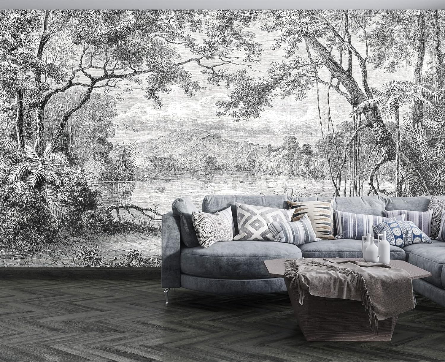Black and White Tropical Rainforest Wall Mural Wallpaper for Bedroom 137" x 100"