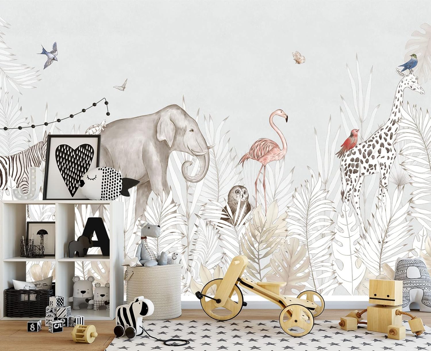 Elephant Zebra Animal Nursery Wallpaper Wall Mural 103" x 69"