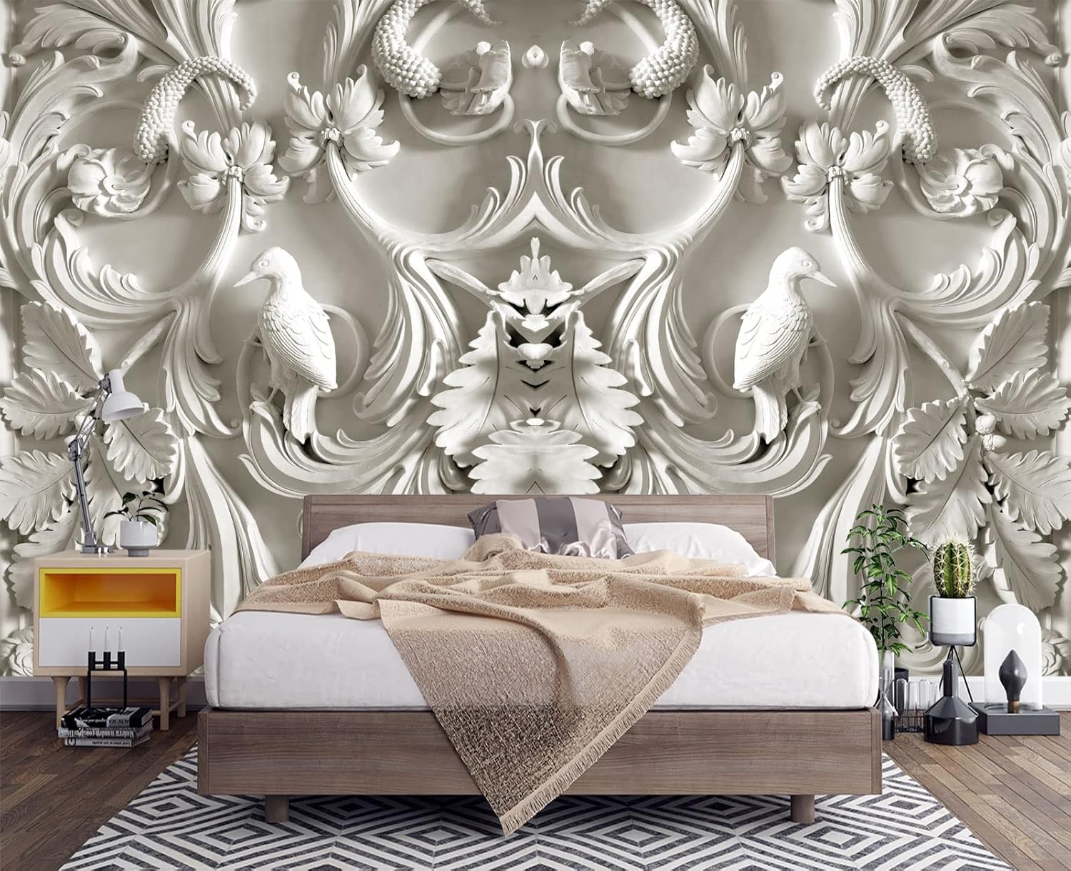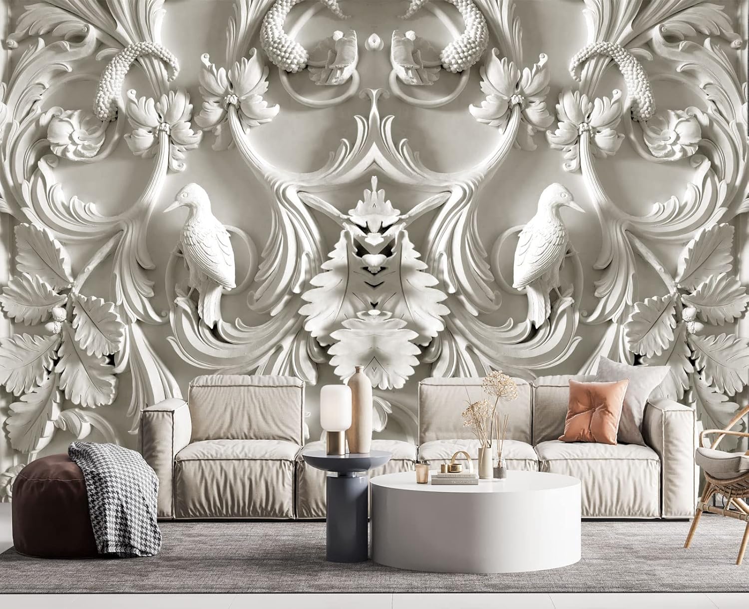 White Gypsum Art Wall Mural Wallpaper for Bedroom 178" x 117"