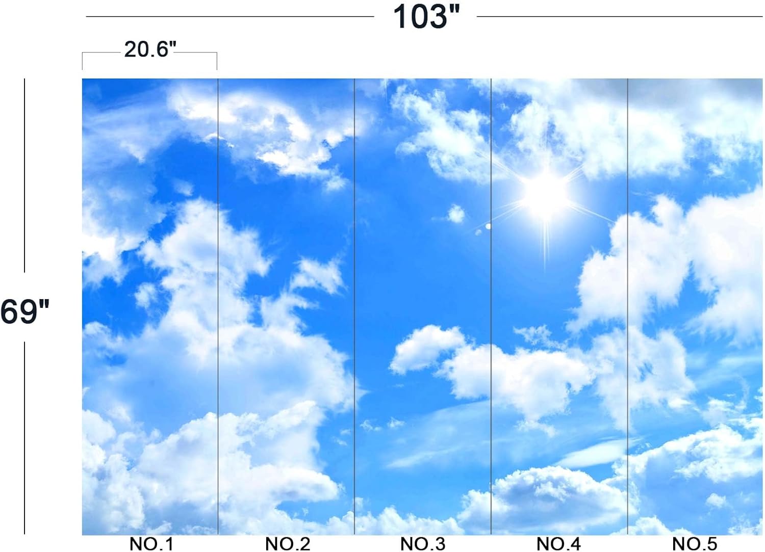 - The size of the wallpaper is 103" wide x 69" high and divided into 5 panels.