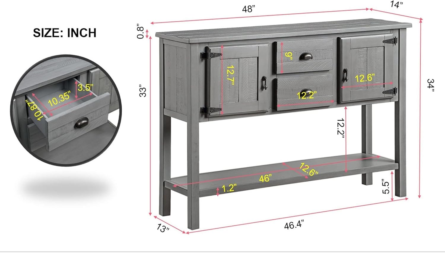 - ćRetro Sofa TablećThe console table 48 '' L* 14 '' W*34'' H .Solid Wood Sideboard Console Table features a retro design that adds a touch of vintage charm to your foyer, entryway, or dining room. Its classic aesthetic enhances the overall ambiance of your space.