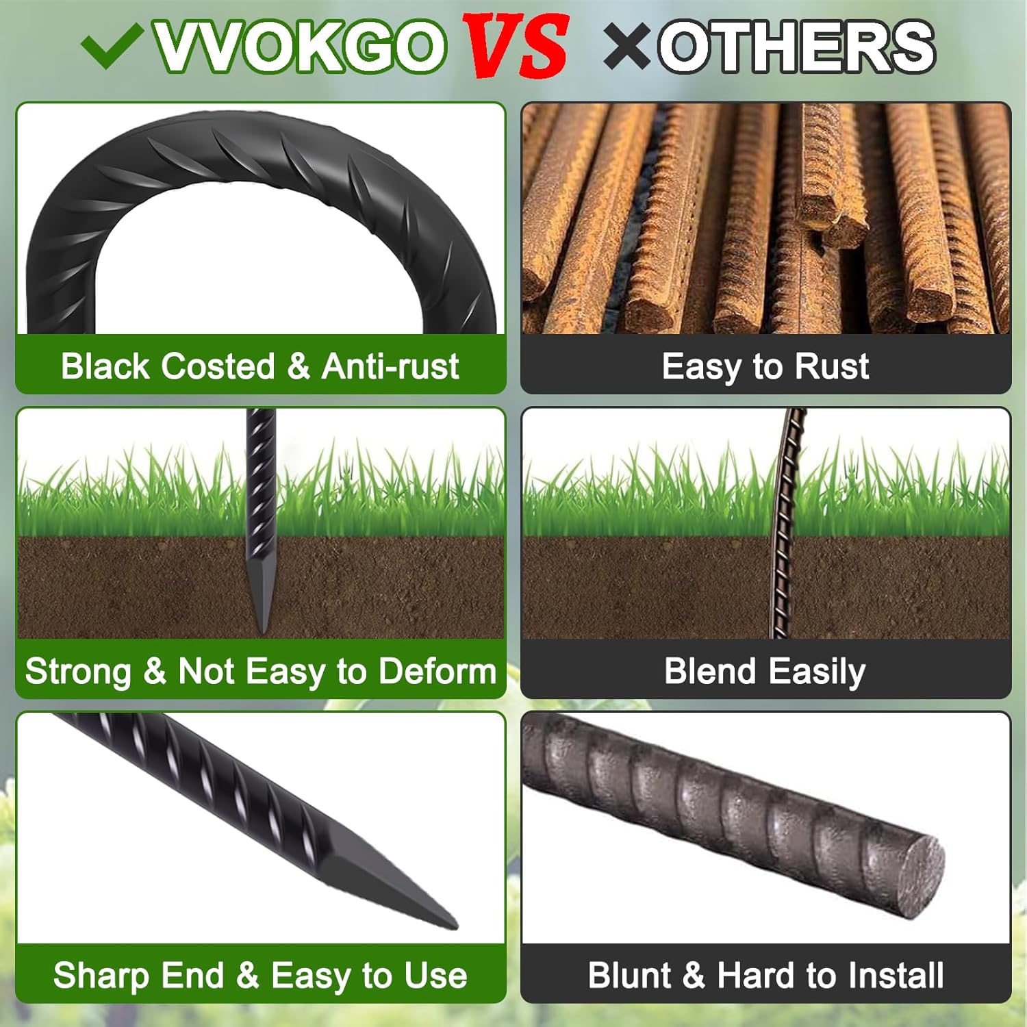 VVOKGO Rebar Stakes 24 Inch J Hook Heavy Duty Ground Anchors (8pcs), 3/8 Inch Diameter Metal Steel Extra Long Fence Stakes with Chisel Point End for Greenhouse, Gazebo, Carport, Camping Tents, Black