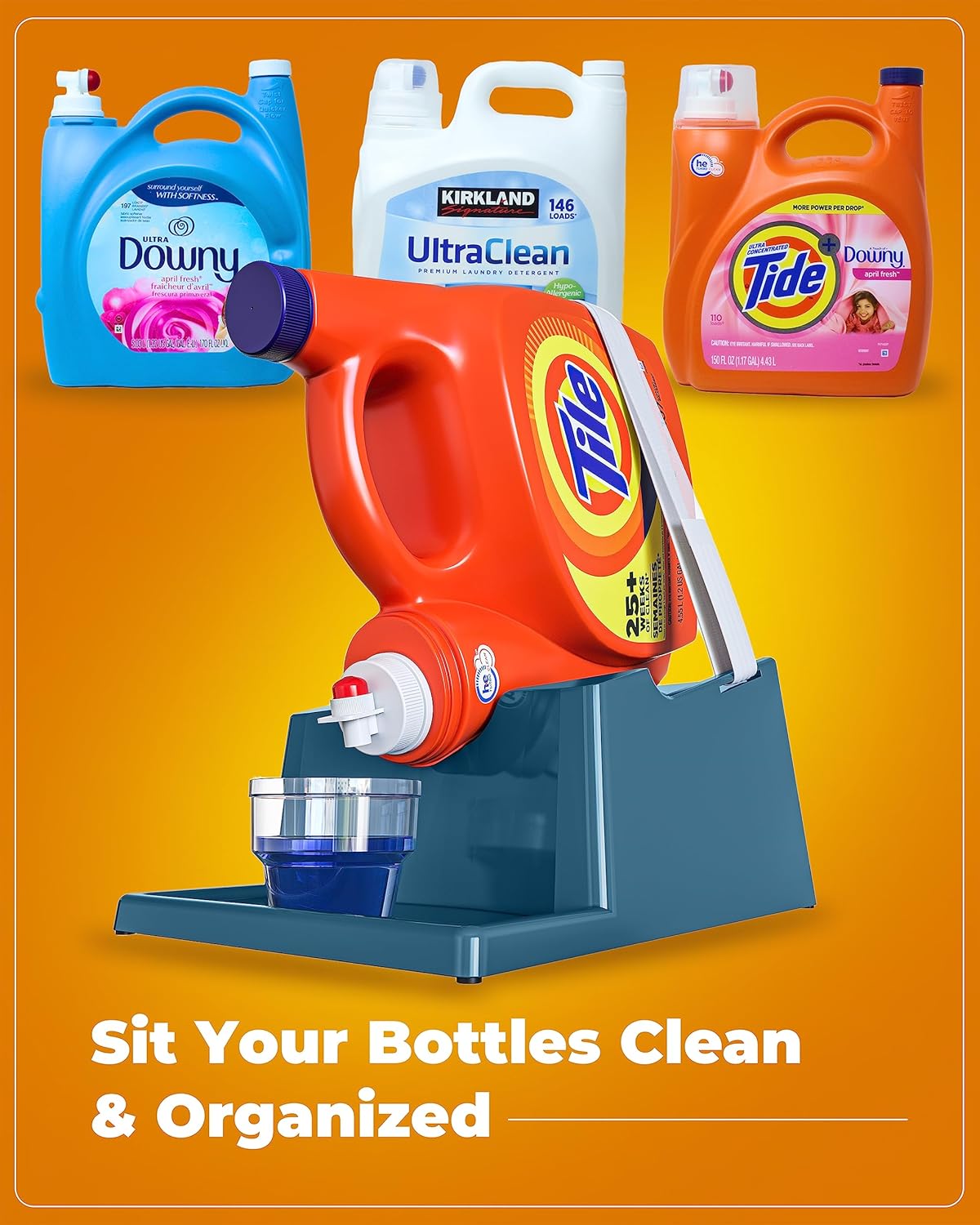 - [Versatile Fit:] The liquid laundry detergent holder station's optimal size (7.9"L x 12.2"W x 5.5"H) accommodates various bottle sizes, providing a perfect fit for most detergent containers without taking up too much space. (Laundry Soap, Cup, and Bottles NOT Included)