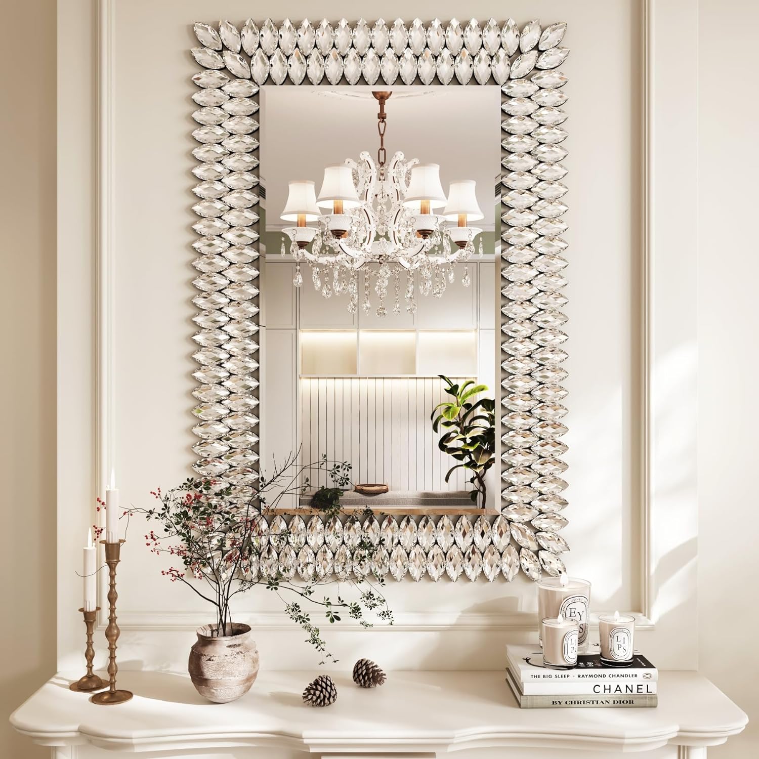 Kelly Miller Jeweled Luxury Bathroom Mirror for Wall, 24"x36" Rectangle Wall Mirror Decorative Mirror Vanity Mirror with Diamonds for Master Bath Half Bath Living Room Bedroom Fireplace Mantle Hallway