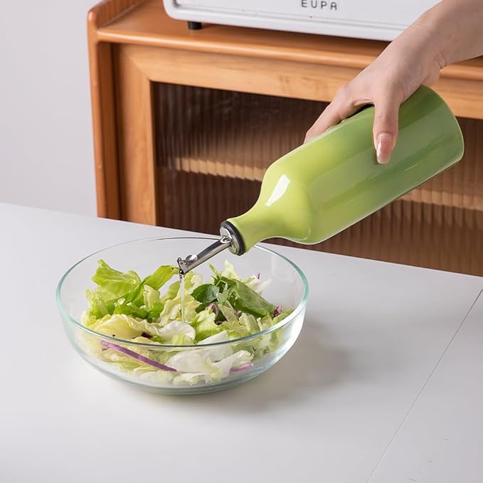 Sweejar Ceramic Olive Oil Dispenser Bottle, 20 Oz Relief Opaque Oil Cruet Protects Oil To Reduce Oxidation, Storage Oil, Vinegar, Soy Sauce, Coffee Syrup, Liquids, Set of 1 (Gradient Green)